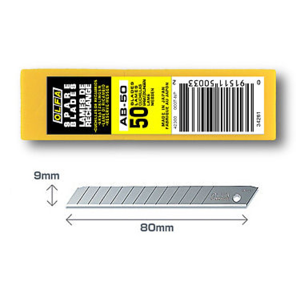 Olfa AB-50B - 9mm Standard Duty 50 Spare Blades - Blister Packed - 6pc